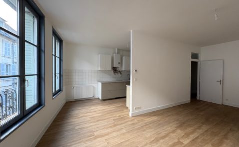 A louer à LONS LE SAUNIER, 14 Rue des Salines, STUDIO composé d’une entrée, cuisine équipée ouverte sur pièce principale, …