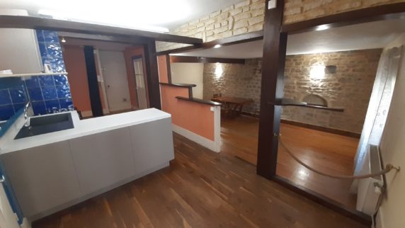 Il se compose d’une entrée, une salle de douche avec wc, une cuisine aménagée ouverte sur salon/séjour et une chambre. Le tout avec un petit balcon et une cave.