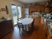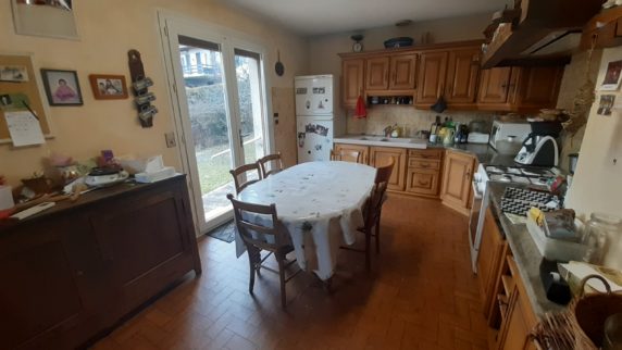 A l’étage: une cuisine aménagée, dégagement ouvrant sur trois chambres, une salle de bains, un wc et un grand salon/séjour.