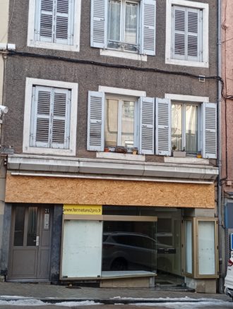 A louer au centre-ville de Saint-Claude, 21 rue du Marché, LOCAL COMMERCIAL avec vitrine sur rue composé d’une pièce et un petit local WC.
