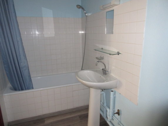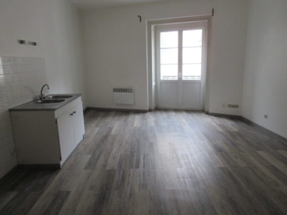 A louer à POLIGNY, 6 Rue Travot, appartement type Studio (N°3) composé de : Entrée avec trois marches, placard mural, une pièce à vivre avec coin cuisine, salle de bains avec baignoire, wc
