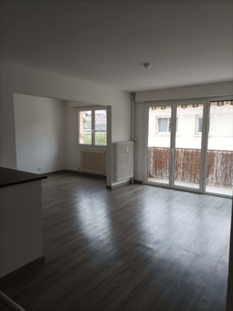 A louer à SAINT CLAUDE, 3 Rue du Pont Central, bel appartement F3 composé d’une cuisine équipée ouverte sur séjour, un cellier, une salle d’eau, un wc , deux chambres, un balcon, une cave, un garage.