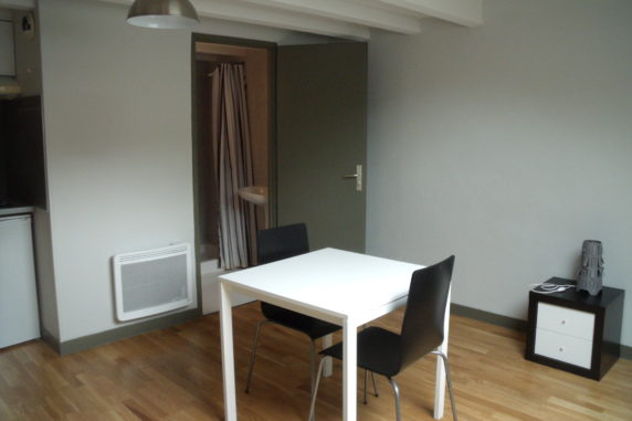 POLIGNY – 80 Grande Rue – Studio N°2 composé d’une pièce à vivre avec coin cuisine équipée ouvert sur pièce de vie, salle de douche avec wc.