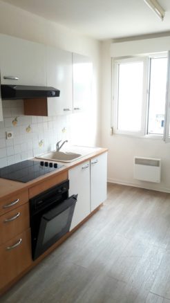composé d’une entrée avec placard, une cuisine aménagée et équipée (hotte, plaques, four, réfrigérateur/congélateur), une chambre séparée avec placard