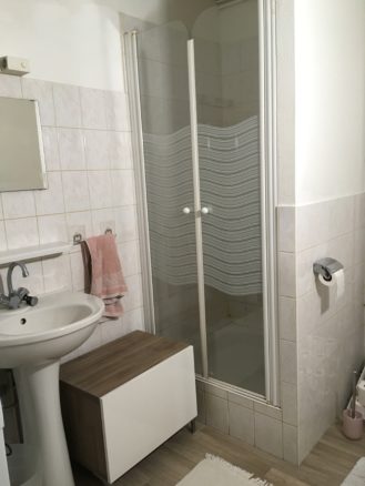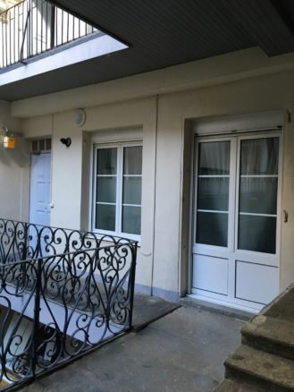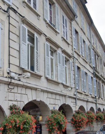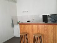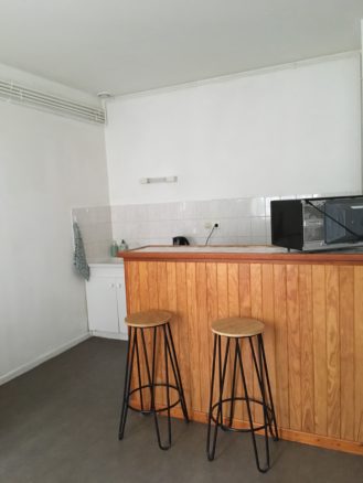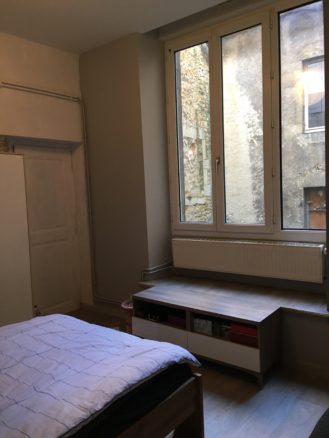 A louer à Lons, 61 rue du Commerce, sur l’arrière, grand appartement F1 composé de : Dégagement, Cuisine-Séjour, Salle de Bains avec douche et wc, une chambre.
