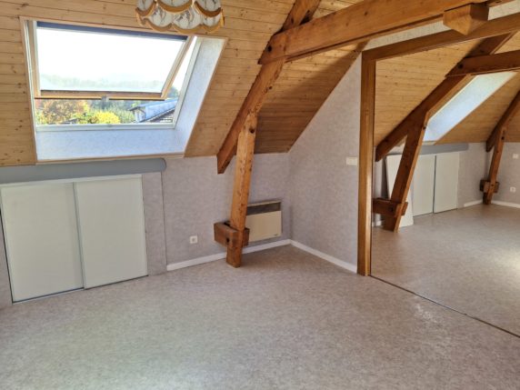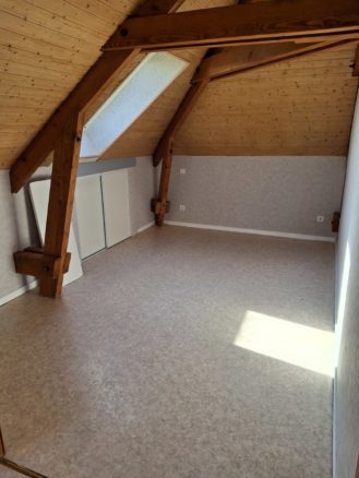 A louer à DOLE, Rue Perraudin, charmant F2 bis situé au 1er étage d’une maison à deux pas de la forêt. Il se compose d’une entrée avec placard, cuisine aménagée et semi-équipée ouverte sur séjour/salon avec placards, chambre avec placard, salle de douche avec placard, WC. Jardin mis à disposition. Stationnement facile.