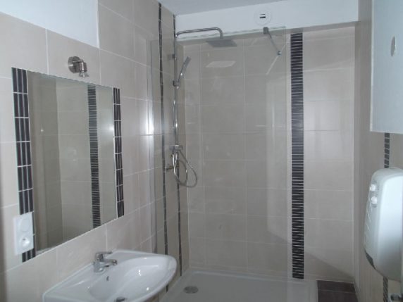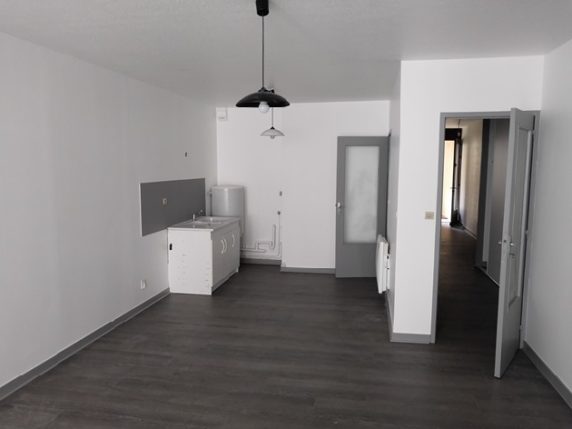 A louer à Lons, 31 rue Tamisier, appartement F3 composé de : Entrée dégagement, Cuisine, Séjour, 2 chambres, Salle de bains avec douche, WC