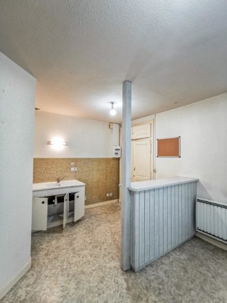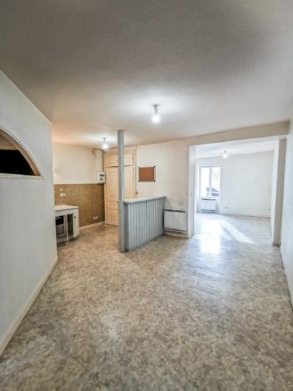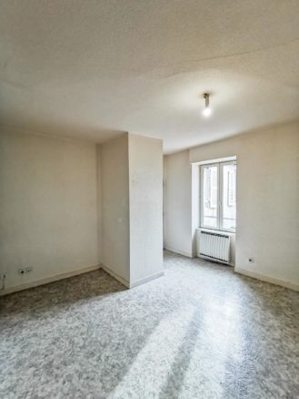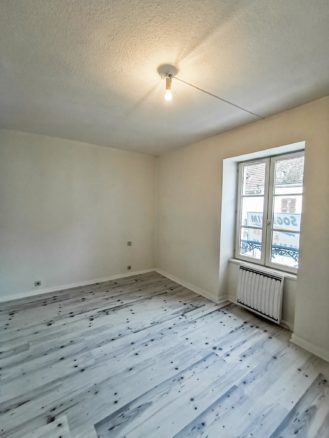 A louer à BLETTERANS, 22 Rue Louis Legrand, appartement F2 bis, composé de : Entrée Dégagement avec placard, cuisine ouverte sur séjour, salon, Chambre 1, Salle de bains avec cabine douche et accessoires, wc,