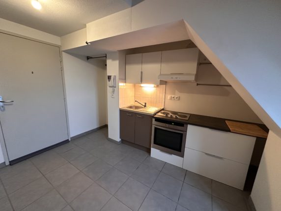 A louer à DOLE, 2 avenue de la Paix, appartement F2 en duplex dans une copropriété proche du centre-ville. Il se compose d’une cuisine aménagée et équipée (plaque de cuisson, four et hotte), séjour. A l’étage : chambre, salle de bains avec baignoire et WC, dressing séparé. Cave.