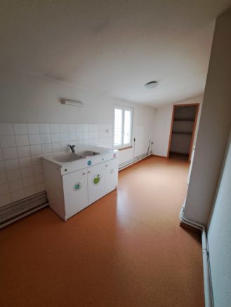 A louer à Lons, 14 Rue des Salines, grand appartement F2,composé de : Entrée dégagement couloir, cuisine, séjour, une chambre, salle d’eau, wc, cellier.