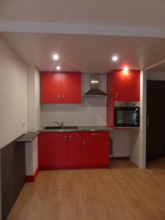A louer à Lons, Rue Emile Monot, appartement F2 composé de : Cuisine aménagée, salon-séjour avec placard, chambre avec placard, salle de bains, wc.