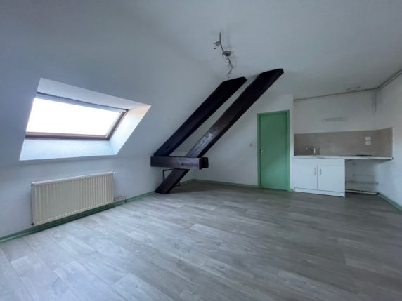 A louer à Lons, 10 Rue Emile Monot, appartement F2, composé de : cuisine ouverte sur séjour, Chambre 1, entrée dégagement, Salle d’eau, wc