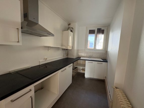A louer à Lons, 15 Rue Lecourbe, appartement F3, composé de : Entrée dégagement, Cuisine équipée, Séjour, 2 chambres, salle d’eau (douche), wc.