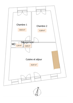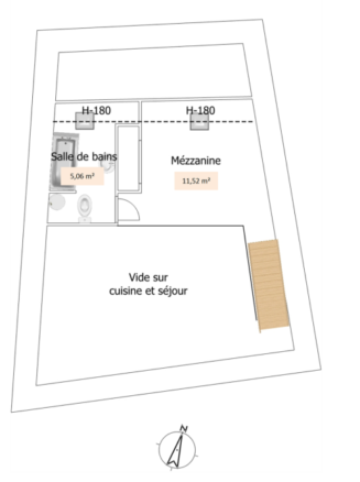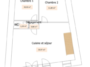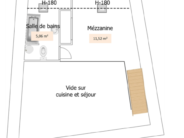 A louer à Lons, 2 Rue Edmond Chapuis, appartement F3 bis duplex composé de : Dégagement, Séjour avec coin cuisine, Chambre 1, Chambre 2, Salle de bains avec baignoire, 2 Wc, mezzanine avec placard
