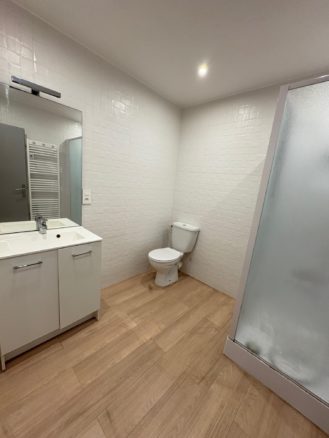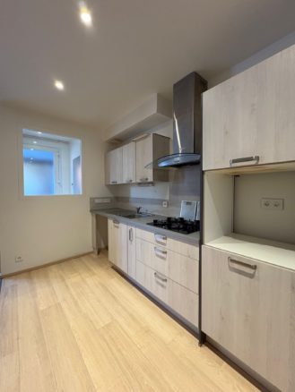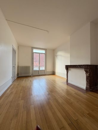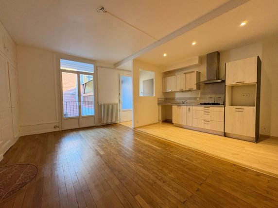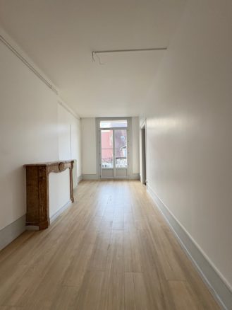 A louer à LONS LE SAUNIER, 31-33 Rue du Commerce, appartement F3 composé de : Cuisine équipée ouverte sur salon-séjour, chambre 1, chambre 2, bureau, salle d’eau (douche) et wc, chaufferie, deux balcons.