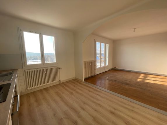 A louer à POIDS DE FIOLE, 2 Rue Sur le Souhait, appartement F3 composé de : Cuisine équipée ouverte sur salon-séjour avec balcon, 2 chambres, salle d’eau, wc.