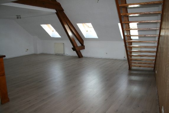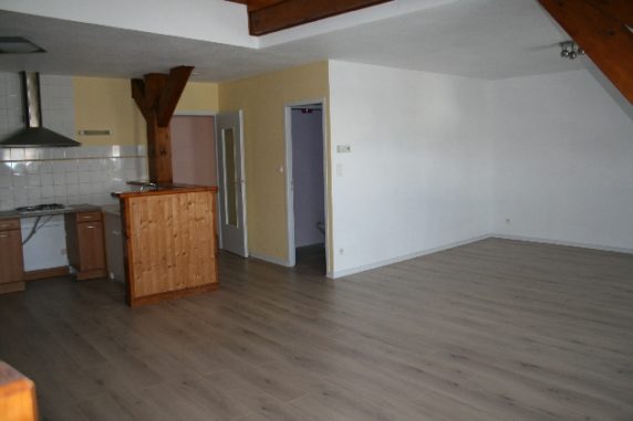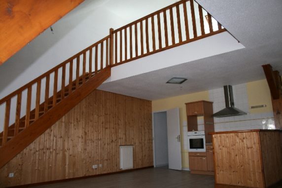A louer à Lons, 122 rue Georges Trouillot, appartement F5 composé de : Hall, cuisine équipée ouverte sur séjour, mezzanine, 3 chambres, wc, salle de bains baignoire + une salle d’eau avec douche, dégagement, rangement .