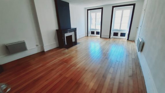 A louer à LONS, 35 Rue du Commerce, grand appartement T2, composé de : entrée dégagement, couloir, cuisine aménagée ouverte sur salon-séjour, salle d’eau, wc.
