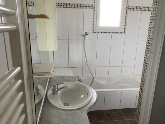A louer à LE DESCHAUX, 10 chemin du Carrouge, maison récente et lumineuse de type 5. Elle se compose d’une entrée avec placards dans séjour, cuisine meublée ouverte sur séjour, 3 chambres avec placards, salle de bains avec baignoire et douche, WC séparé.