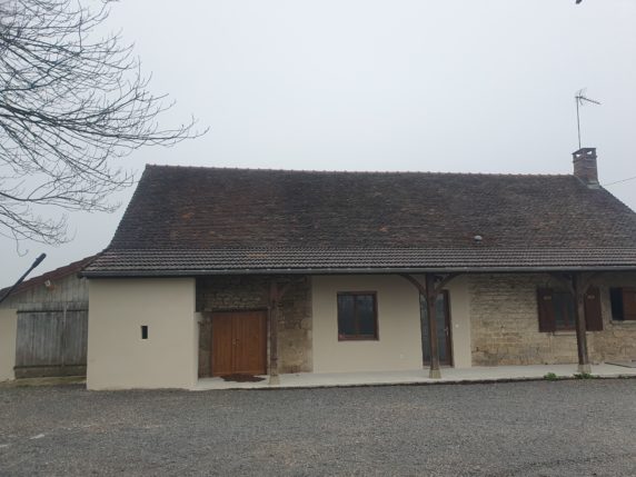 A louer à COURLAOUX, 8 Rue du Monument aux Morts, Maison T3 rénovée, de plain pied, composée de : cuisine équipée, salon-séjour, deux chambres, salle d’eau, wc.