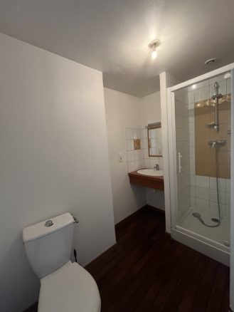 L’appartement se compose d’une entrée dégagement, une pièce à vivre, un coin cuisine, une salle d’eau avec douche et WC.