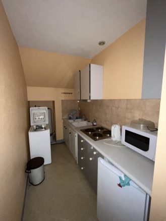 L’appartement se compose d’une entrée avec dégagement, une pièce de vie / chambre, une cuisine équipée, une salle de bain avec douche et WC