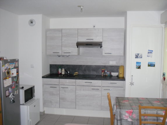 Appartement récent dans une petite résidence BBC sécurisée, composé d’une entrée avec rangement, une cuisine aménagée et équipée (plaques vitro, hotte, réfrigérateur) ouverte sur pièce principale donnant accès à la terrasse, une SDB avec douche et WC.