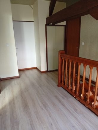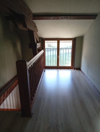 A louer, à AVIGNON-LES-SAINT-CLAUDE, 2 rue des Vergers, appartement de type 4 en duplex, comprenant une cuisine ouverte sur séjour, 1 cellier, un dégagement, trois chambres dont une au rez-de-chaussée, une salle de bain, WC,