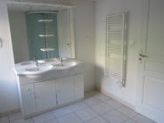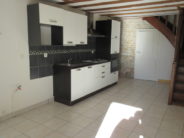 VADANS –  Maison F3 composée d’une entrée, cuisine équipée (four, hotte) séjour ouvrant sur terrasse abritée, salle de bains avec douche et 2 vasques. Au 1er étage: 2 chambres, réduit avec chauffe eau, wc.