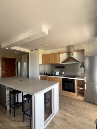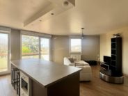 Le logement offre un séjour spacieux et lumineux, ouvert sur une cuisine moderne entièrement équipée et aménagée disposant de nombreux rangements.